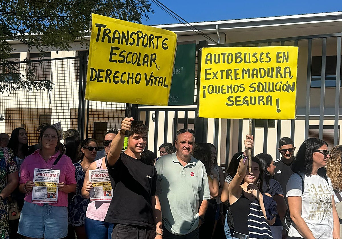 5.000 alumnos extremeños vuelven a quedarse sin autobús que le lleves desde sus municipios a los colegios e institutos y las familias protestan en las paradas y las puertas de los centros educativos