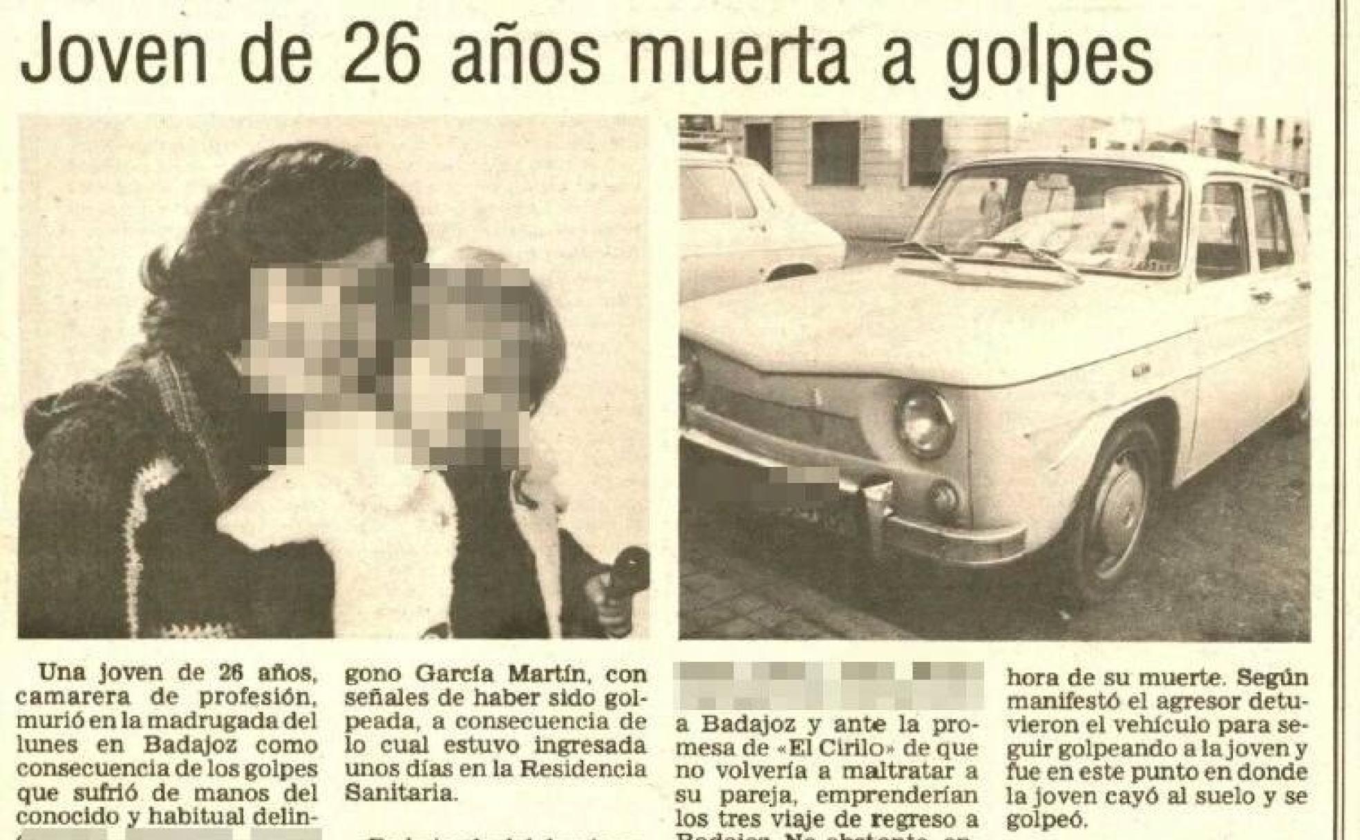 En 1978 un conocido delincuente pacense, El Cirilo, mató a golpes a su novia. Comenzó a golpearla en la Plaza Mayor cacereña delante de numerosos testigosEl Cirilo es un delincuente prolífico en la Hemeroteca de HOY. Violación, amenazas, robo, delito contra la salud pública, desacato, atentado, riesgo contra la seguridad del tráfico, intento de homicidio y, el más grave de todos, homicidio. Detrás de este último se esconde uno de los casos más graves de violencia machista que ha registrado la región. Una mujer murió de una paliza en un viaje desde Cáceres a Badajoz y nadie la ayudó.
