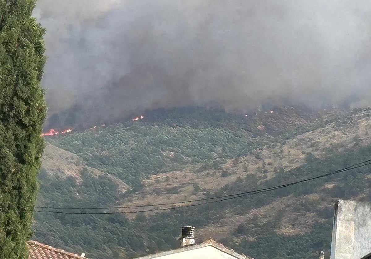 La zona norte cacereña sufre un nuevo incendio. Ha comenzado en torno a las 18.30 horas en la sierra de Jarilla, en la comarca de Trasierra, y ha alcanzado la cumbre hasta El Torno, en el Valle del Jerte, desde donde se visualiza la gran humareda que corona la cumbre pero también las llamas.