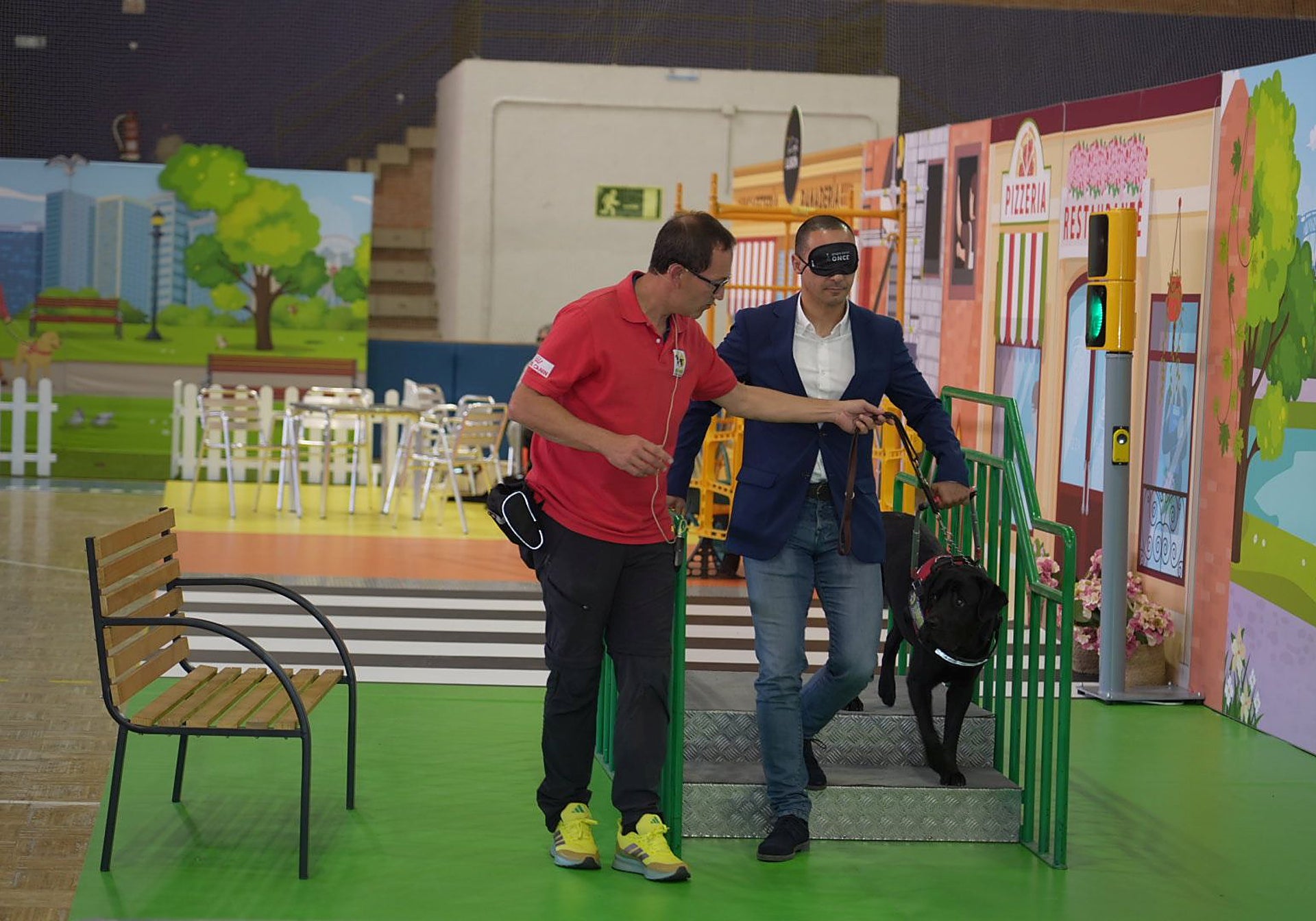 A través de distintos ejercicios como subir y bajar escaleras o cruzar pasos de cebra, los instructores de movilidad con perro guía Nuria García y Rafael Almansa han explicado cómo es el proceso de adiestramiento.