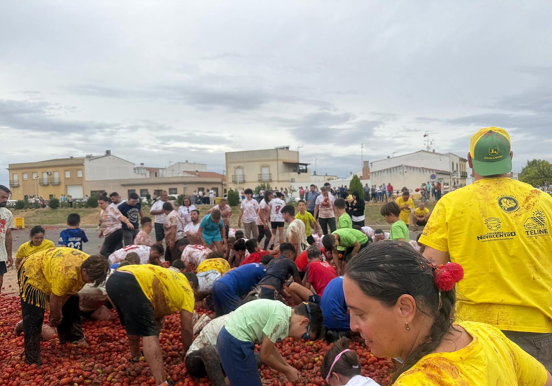 La 'Tomatá' de Talavera la Real ha celebrado este sábado su cuarta edición con vecinos y visitantes tirándose 12.000 kilos de tomate tipo pera cultivados por agricultores de las Vegas del Guadiana. No ha habido incidentes en una fiesta en la que además se repartieron premios ocultos en bolas rojas entre los tomates. El mayor, de mil euros, fue a parar a Estíbaliz, una joven talaverana perteneciente a una de las cinco peñas participantes en un evento que, según su alcaldesa, Manuela Sancho, cada año va a más.