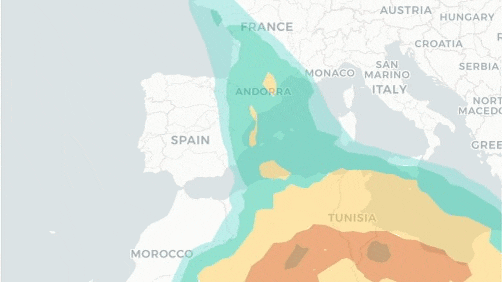 La entrada del polvo en suspensión, que degrada la calidad del aire, afectará en la Península Ibérica de manera especial al este de Andalucía, Murcia, Albacete y la mitad sur de la Comunidad Valenciana.