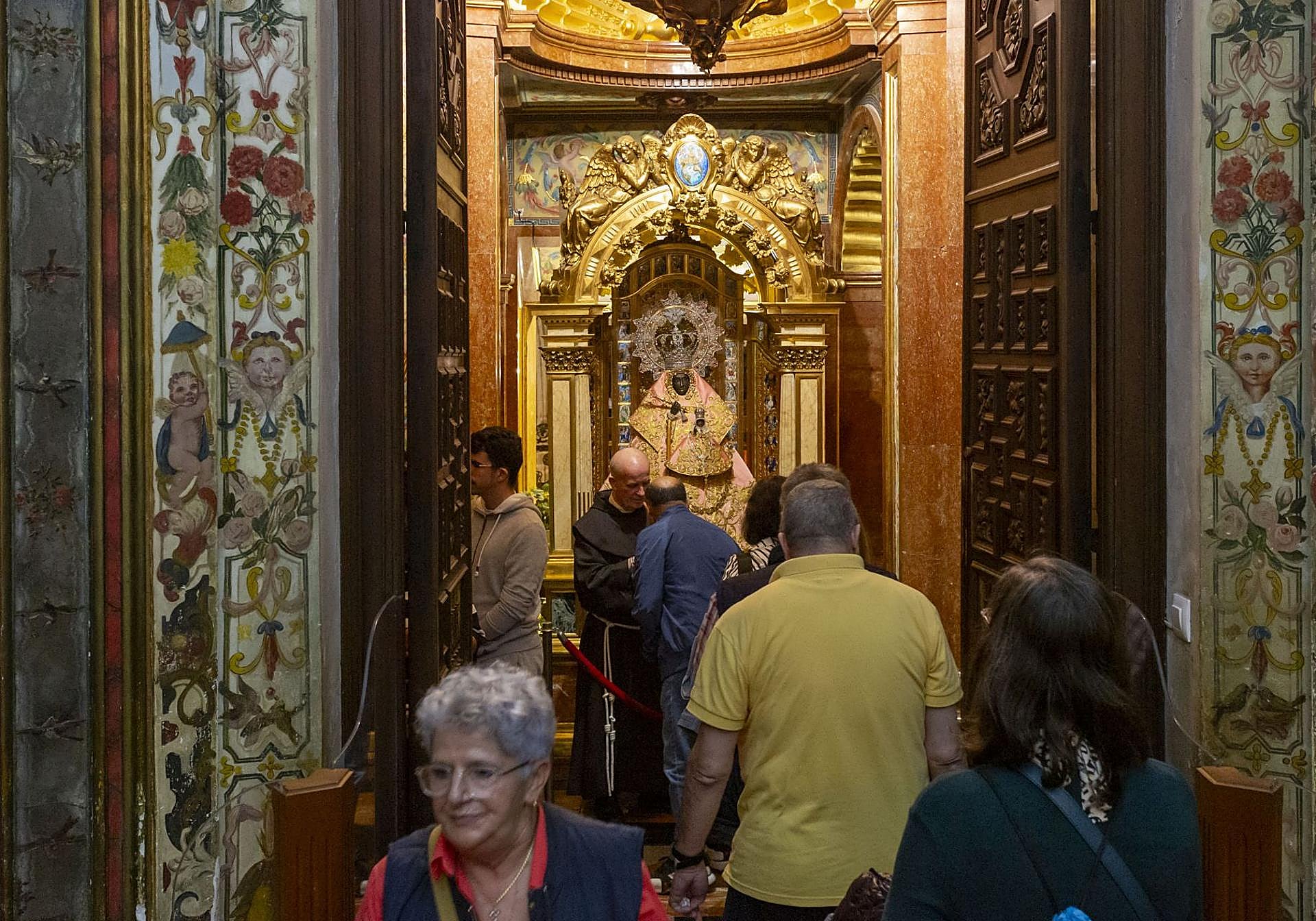 «En la asociación somos 550 mujeres, de todo el mundo, y con el voluntariado empezamos el mes pasado», sitúa su presidenta, Pilar Palenzuela-Villegas. «Nuestro fin fundamental –amplía– es propagar la devoción a la Virgen, con el novenario y atendiendo a los peregrinos. Y cada sábado más próximo al día 12 de cada mes, celebramos una misa vespertina en honor a la coronación canónica de la Virgen de Guadalupe».