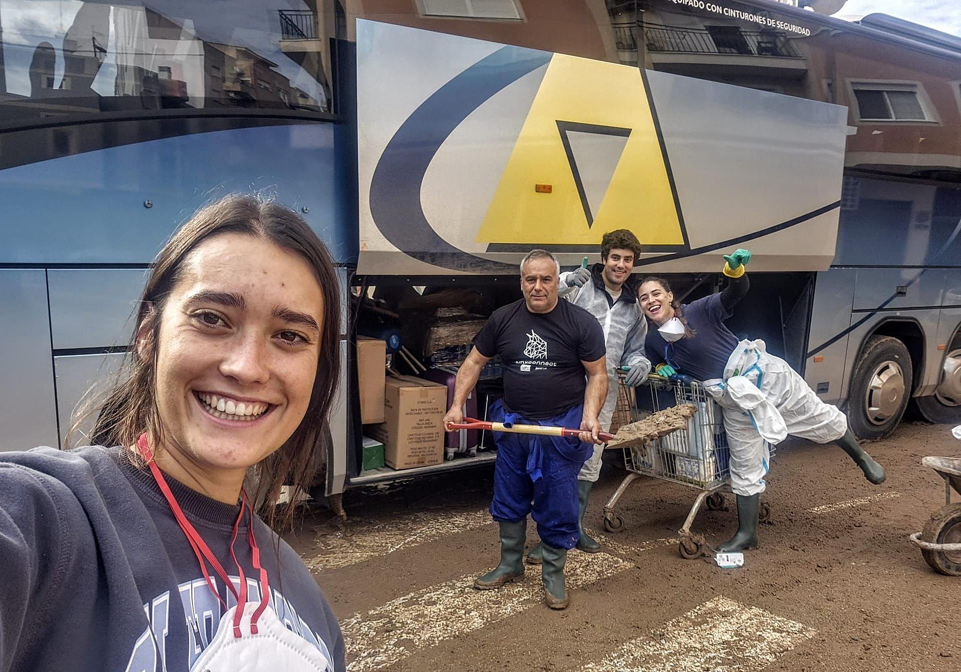 Su soltura y decisión ha mejorado, aunque sea un poquito, la vida en Algemesí, también afectada por la riada de hace dos semanas. «Mi tío se enteró de que quería ir con mi coche a ayudar a Valencia y como mi familia tiene una empresa, Autocares Canito, ofreció un autobús y un chófer. Empezó a responder gente a mi mensaje en Facebook y este jueves pasado a las doce de la noche salimos de Ribera del Fresno con gente del pueblo, de Hinojosa del Valle, de Villafranca de los Barros, de Puebla de la Calzada y de Mérida. Los había de todas las edades, la más joven yo y el mayor con 70 años».