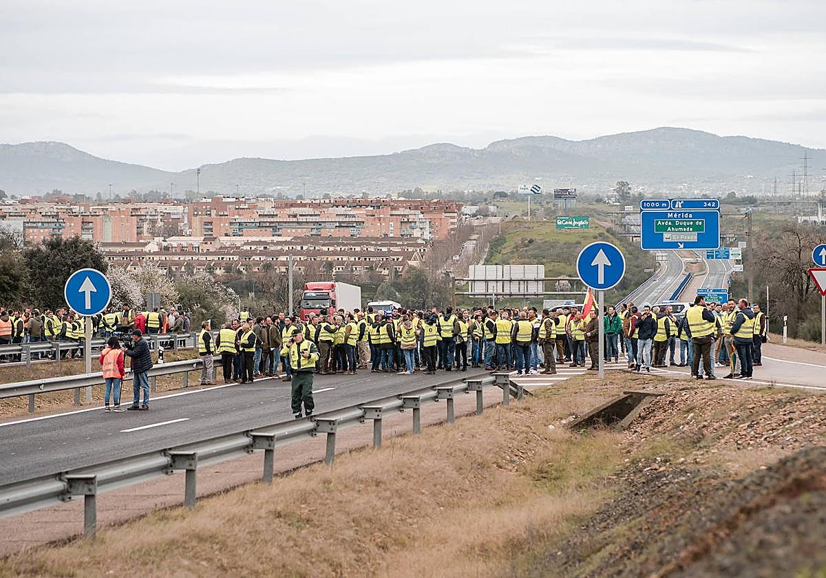 Mérida se erigió esta jornada como el epicentro de la concentración de tractores y manifestantes en la cuarta jornada de la protesta agraria en Extremadura por afectar a dos puntos claves de la circulación por la región, la A-5 y la A-66, que confluyen en la capital de Extremadura.