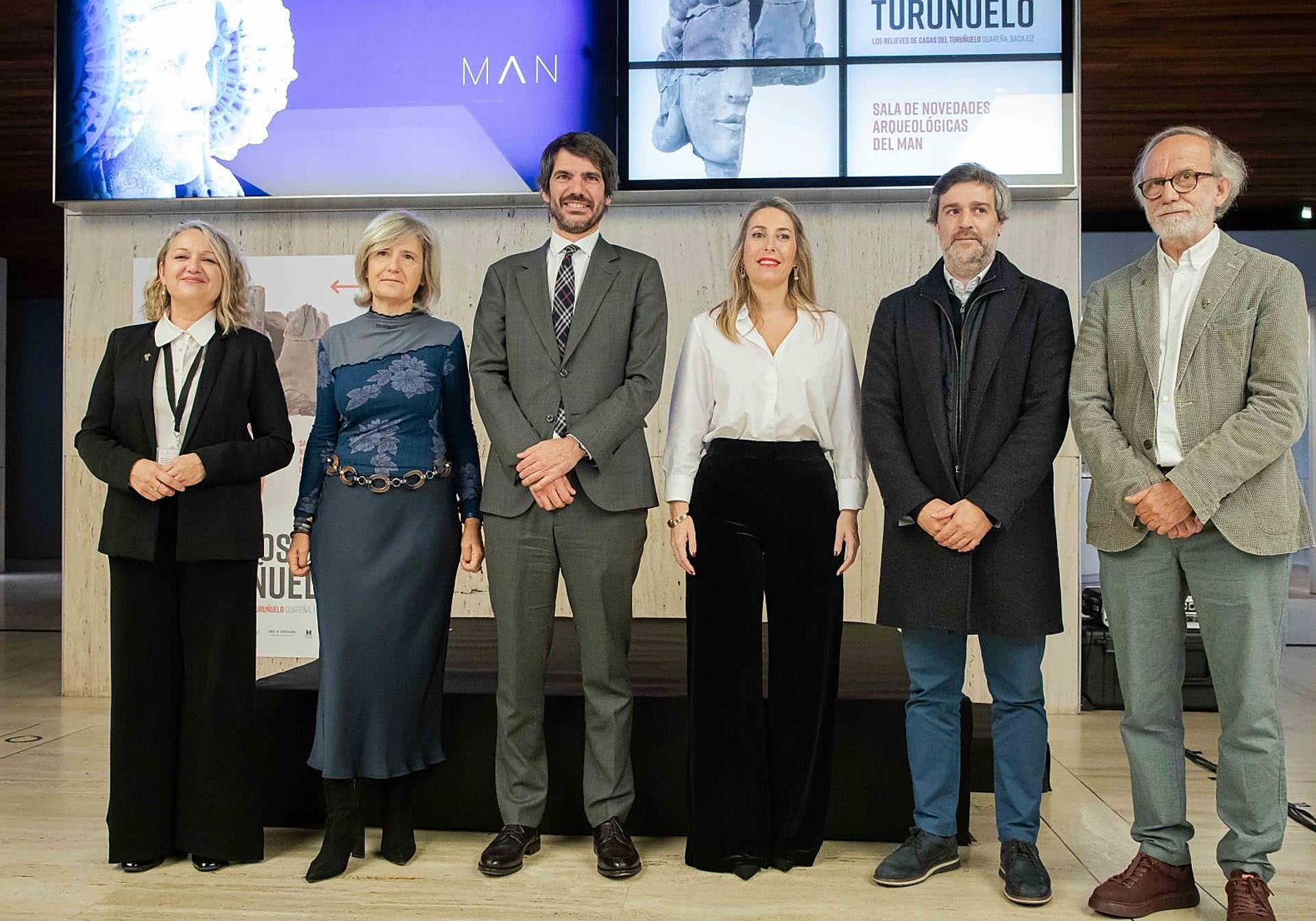 En la visita han estado presentes el ministro de Cultura, Ernest Urtasun, la presidenta de la Junta, María Guardiola, la directora del MAN, Isabel Izquierdo Peraile y el comisario de la muestra, investigador del Centro Superior de Investigaciones Científicas (CSIC) y del Instituto de Arqueología de Mérida (IAM), Sebastián Celestino, quien ha ofrecido sus explicaciones como coodirector del yacimiento Casas del Turuñuelo de Guareña. También ha viajado a la capital la consejera de Cultura, Victoria Bazaga.
