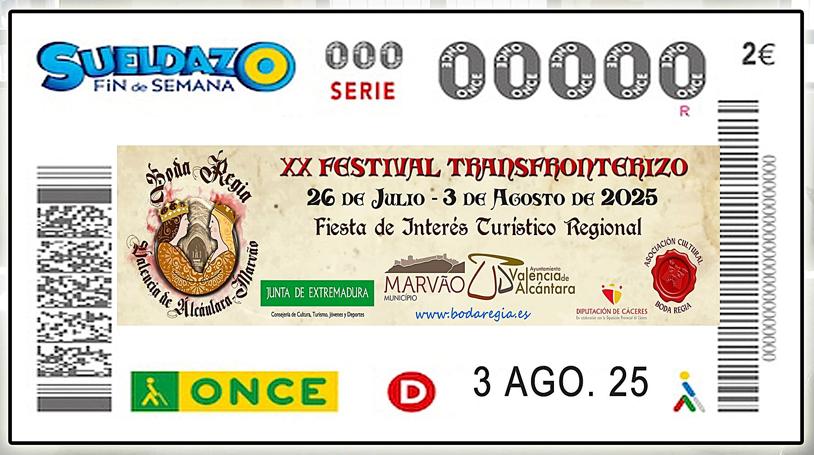 Valencia de Alcántara (Cáceres) vuelve a convertirse en epicentro de la historia y la cultura con motivo del XX Festival Transfronterizo Boda Regia. Para conmemorar sus dos décadas de trayectoria, la ONCE ha dedicado un cupón especial a esta emblemática celebración que recrea la unión real entre la infanta Isabel, hija de los Reyes Católicos, y el rey portugués Manuel I, celebrada en 1497.