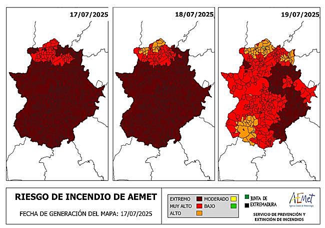 Desde la Consejería de Gestión Forestal y Mundo Rural piden a la población mucha precaución ya que la mayor parte de Extremadura se encuentra este jueves y el viernes en riesgo extremo de incendios. «Estos días se vuelven a repetir las mismas condiciones meteorológicas, muy adversas y peligrosas para los incendios. Estaremos en riesgo extremo en toda la región. Por esta razón, volvemos a pedir a la ciudadanía sentido común y precaución», ha pedido Bayón.