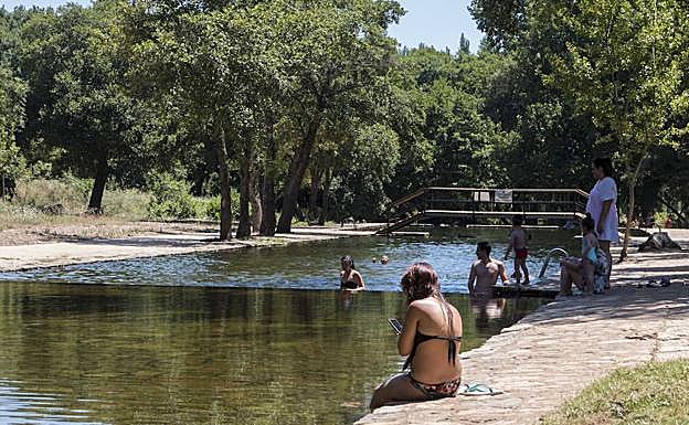 Se comprende tal declaración de intenciones al verle un martes a la una de la tarde de pie, en bañador, sin camiseta, con la caña de pescar la mano, esperando a que pique algún 'jarabuguillo'. Al lado tiene una mesa de camping con objetos varios, entre ellos medio fuet, y en la que su mujer acaba de colocar un plato de mejillones en escabeche. «Es el vermú, o como yo le llamo, la hora del ángelus», ríe él. «Solemos venir aquí los lunes, que es el día que mi primo hermano –que está con él– cierra su negocio, el Asador Extremeño en Talavera La Real», explica Antonio. Él, su mujer, su primo hermano, el niño y la niña salieron del pueblo por la mañana e hicieron un alto en el camino en Villafranco del Guadiana, para tomar unas tostadas y un zumo de naranja natural en el bar de la plaza. Al mediodía ya estaban en las piscinas fluviales de La Codosera, que son tres y a diferencia de otras de la comunidad autónoma, no son gratis.