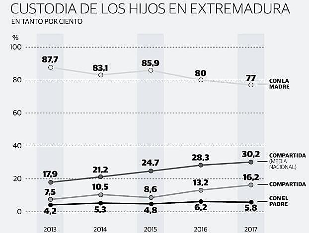 Sin embargo, hay que subrayar que el porcentaje de custodias compartidas en Extremadura casi se ha duplicado en los últimos dos años. En 2015 solo se concedieron el 8,6%. «Hemos mejorado, pero era fácil hacerlo siendo los últimos», opina José Carlos Hernández, presidente de la Asociación Por los Derechos de los Niños Custodia Compartida.