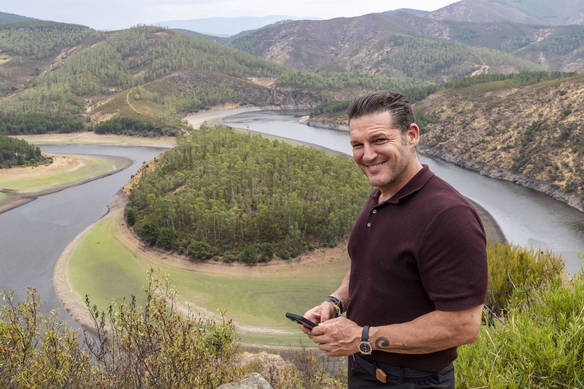 El icónico Meandro Melero, el mirador de Las Hurdes por el que todo viajero cae rendido, causó la misma sensación en el cantante, que hizo varias paradas para mandar en directo fotos y vídeos a su familia y amigos además de para hacerse toda foto que le pedían los turistas a su paso.
