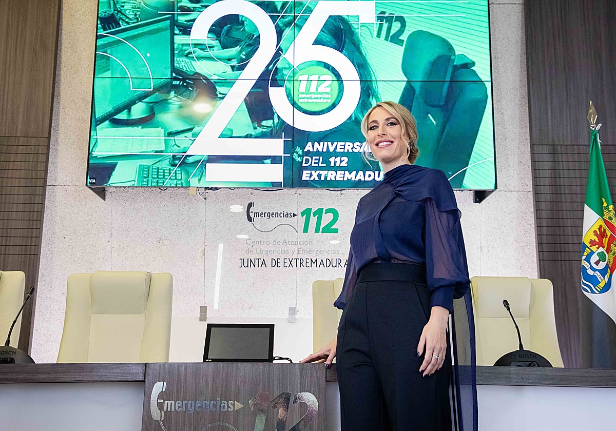 La presidenta de la Junta subraya que Extremadura requiere de «certidumbre» para seguir creciendo, tras un 2024 del que resalta los logros económicos. «Se han sentado las bases del cambio, pero se necesita más», asegura en su intervención desde la sede del Centro 112