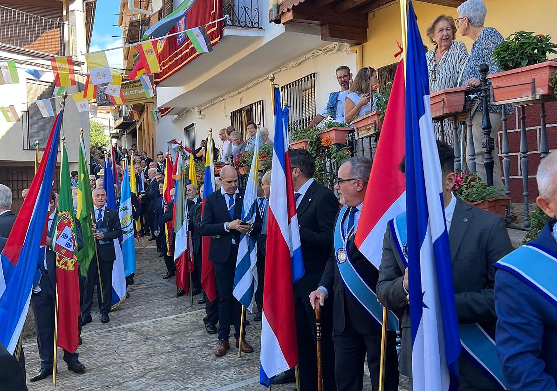 A continuación se produjo uno de los momentos más vistosos de la celebración: la procesión en la que los caballeros portan las banderas en representación de 29 países, con presencia de la enseña extremeña. Estuvieron acompañados por las integrantes de la Asociación de Damas de Guadalupe, que en 2027 cumplirá su cincuenta aniversario.