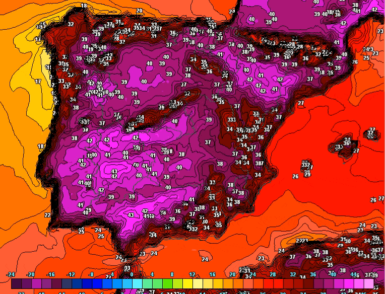 La Aemet también sostiene que «para el lunes y martes de la semana próxima es probable que las temperaturas sigan subiendo en el suroeste e interior del nordeste, de forma que continuarán los valores anormalmente cálidos. Durante estos días se alcanzarán probablemente los 41-43 ºC en torno a las principales depresiones de los cuadrantes suroeste y nordeste peninsulares», detalla.