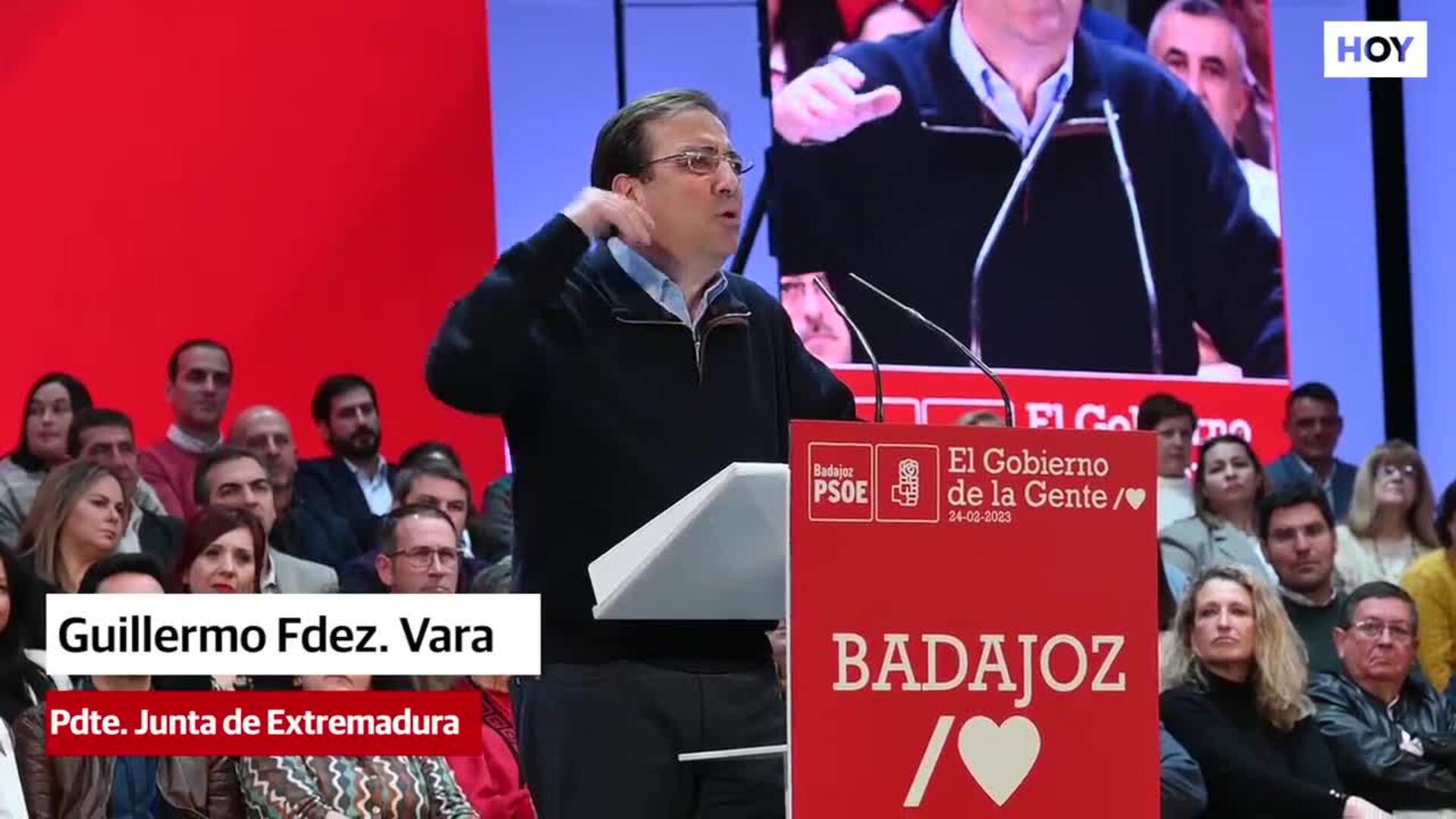 El presidente del Gobierno pidió a los socialistas extremeños que, «cuando habléis con la gente de la derecha y les miréis a los ojos, me gustaría que hiciérais la siguiente reflexión: con pandemia, volcán y guerra... lo hemos logrado. Imaginaos cuando ese viento sople a favor. Ese tiempo llegará con Guillermo Fernández Vara en la Junta y con Ricardo Cabezas en Badajoz».