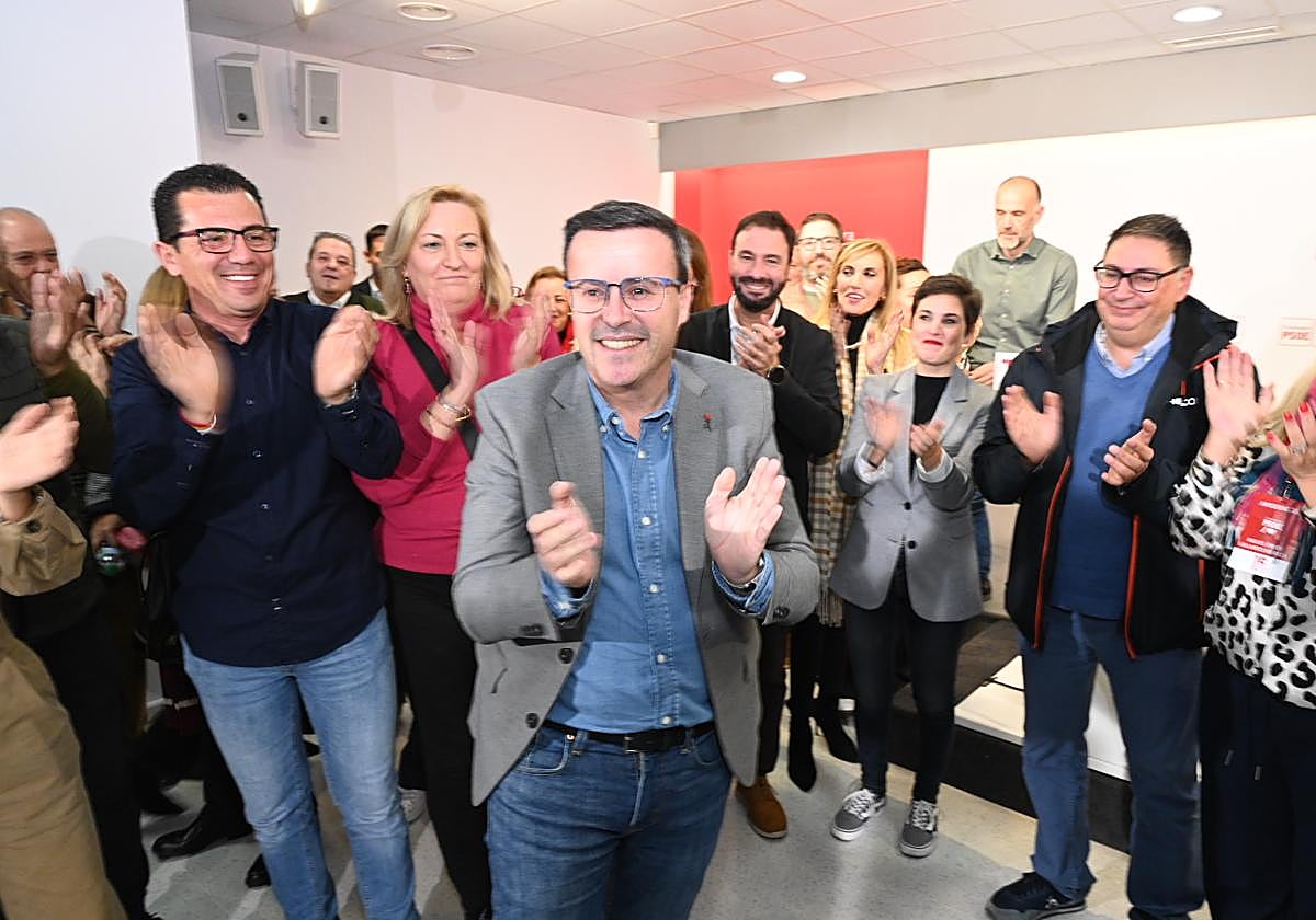 El reelegido líder de los socialistas compareció ante sus simpatizantes para resaltar que se ha ampliado el apoyo de los militantes, «se amplía también la responsabilidad» de estar al frente del PSOE extremeño.