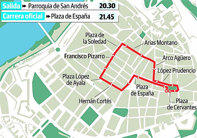 Procesión de la Hermandad y Cofradía de Penitencia de Nuestro Padre Jesús del Amparo, Dulce Nombre del Señor, Santísimo Cristo de la Fe y Nuestra Señora de la Piedad, María Santísima del Mayor Dolor: Salida a las 20.30 horas de la Parroquia de Santo Domingo (Padres Paúles), Plaza de Santo Domingo, C/ Santo Domingo, C/ de Santa Ana, C/ Duque de San Germán, Plaza de la Soledad, C/ Francisco Pizarro, C/ Vicente Barrantes, Plaza de España (Carrera Oficial 23.00 horas - Estación de Penitencia en la S.I. Catedral Metropolitana), C/ Obispo San Juan de Ribera, C/ Hernán Cortés, C/ de Gabriel, C/ Santo Domingo, Plaza de Santo Domingo y entrada en Carrera Oficial a la Parroquia de Santo Domingo (Padres Paúles) en Carrera Oficial a las 23.00 horas.