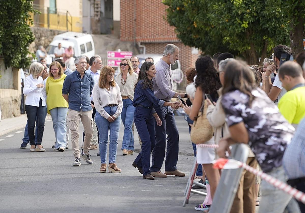 Fotos | Así ha sido la llegada de los Reyes a Extremadura: primera parada en la localidad de Rebollar . Vecinos y autoridades han saludado y explicado la situación a Felipe VI y Letizia