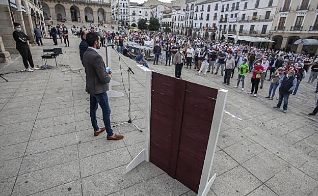 En Cáceres, la protesta inicialmente estaba prevista en los alrededores de la plaza de toros de la Era de los Mártires, pero las autoridades sanitarias la han trasladado a la Plaza Mayor, para evitar la marcha prevista hasta el Paseo Cánovas por motivos de salud.