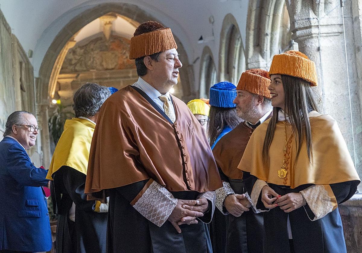 Tras la lectura de la memoria del curso pasado por parte del secretario general de la UEx, Francisco Álvarez, se ha procedido a la investidura de los nuevos doctores y después el catedrático de Derecho Financiero y Tributario de la Facultad de Derecho, Clemente Juan Checa, ha pronunciado la lección inaugural con el título 'La financiación singular para Cataluña, cínica instrumentalización del lenguaje para disfrazar un privilegio fiscal'.
