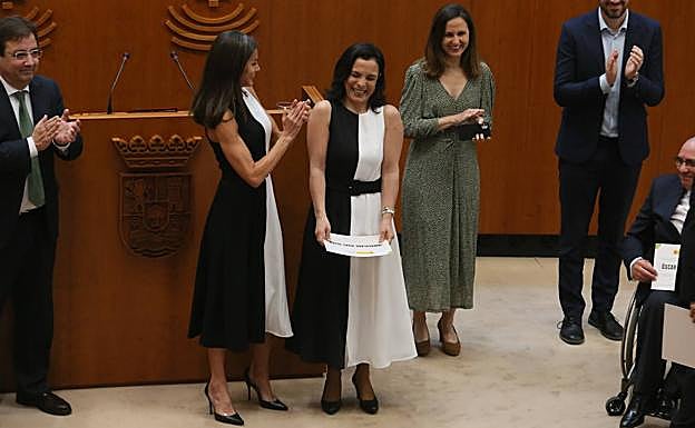 No fue el único gesto cercano de la reina, que a su llegada se saltó el protocolo para saludar al poco público que se había congregado en el patio de los naranjos de la Asamblea de Extremadura, unas cincuenta personas que no tuvieron fácil ver a la esposa de Felipe VI desde su posición. A ellas se sumaron algunos curiosos en los balcones de los edificios del entorno. Doña Letizia también se mostró cariñosa con el resto de los galardonados.