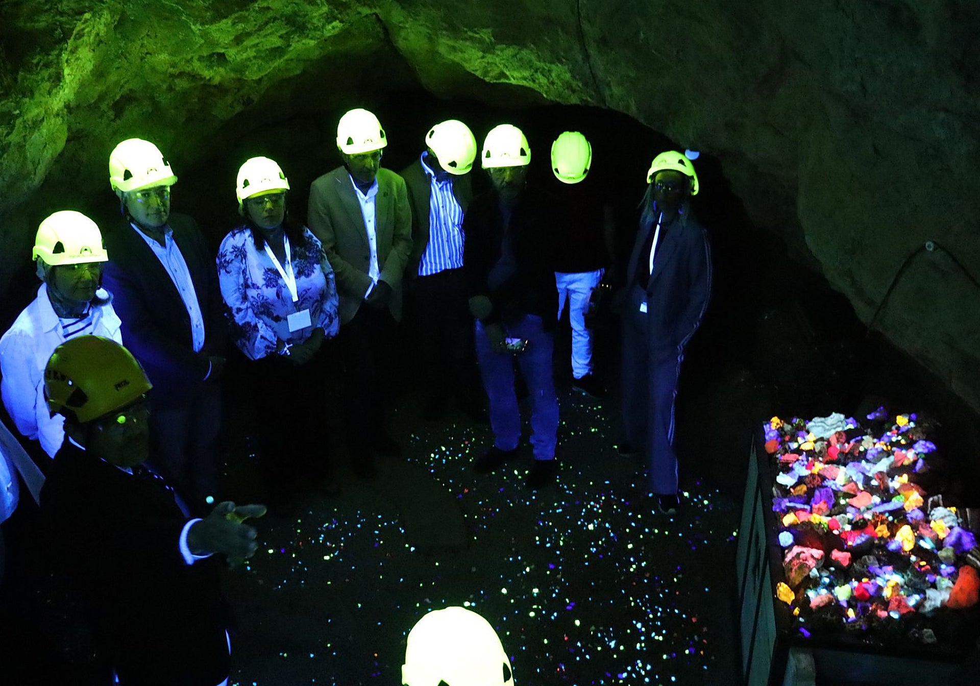 Ese cromatismo también es muy llamativo sin fluorescencia, matiza Fernández Amo. Para los visitantes, Garandina presenta una amplia gama de colores llamativos «complementado por el brillo de innumerables pequeños cristales de cuarzo que tapizan las paredes de la vieja mina».