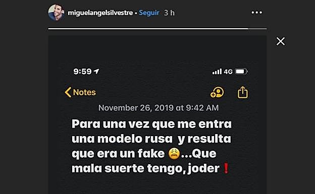 Silvestre se ha tomado el asunto con mucho humor y ha publicado una historia en su cuenta de Instagram lamentando que su aventura con la joven no fuese real: «Para una vez que me entra una modelo rusa y resulta que era un fake... Que mala suerte tengo, joder».