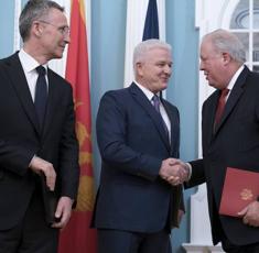 El primer ministro de Montenegro, Dusko Markovic, y titular de Relaciones Exteriores, Srdjan Darmanovic, entregaron el lunes al gobierno estadounidense el instrumento de adhesión a la alianza de este pequeño país de 626.000 habitantes, en una ceremonia en el Departamento de Estado. La integración a la organización de esta pequeña república de la Yugoslavia comunista enfadó a Rusia, que considera la considera "una provocación".
