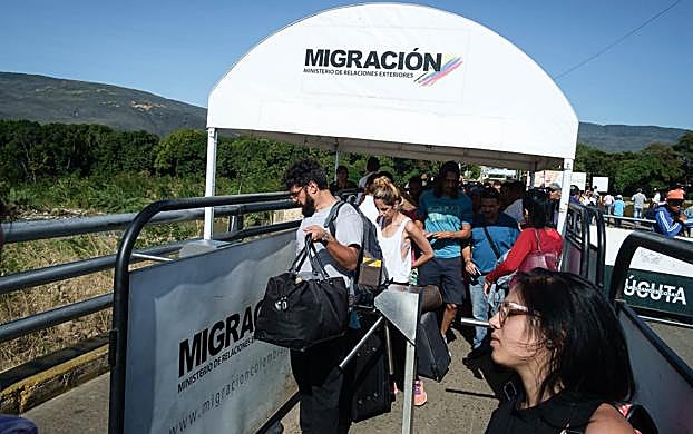 A las 2:00 de la tarde del 23 de agosto, la extenuada dupla se hallaba frente a la aduana de salida, a 100 metros del puente internacional Simón Bolívar. Sudando bajo un sol inclemente y con sus cinco maletas, descubrieron que debían hacer dos interminables colas para abandonar territorio venezolano: en una entregaban una tira de papel con la fecha; en otra imponían el sello de salida. Nadie entendía esa locura pero pronto comprendieron. Las filas, deliberadamente lentas, estaban diseñadas para que un grupo de personas ofreciera saltárselas por 40.000 bolívares y obtener el pasaporte sellado. El “servicio” brindaba una opción VIP: podía incluir el pasaje en bus a cualquier destino y el acarreo del equipaje a través del puente hasta territorio colombiano.