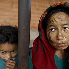 Una mujer nepalí espera a ser atentida en un hospital junto a su hija, de diez años.