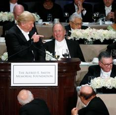 La cena de gana suele servir para que los candidatos se rían de sí mismos, y Trump, por ejemplo, afirmó que su mejor cualidad era su modestia, casi "mejor" que su temperamento.