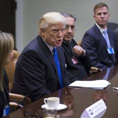 Trump con los directivos de General Motors explicando que reducirá las regulaciones medioambientales.