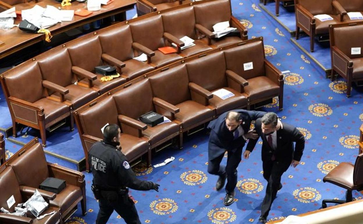 Alguno de los congresistas evacuado por los miembros de seguridad. Reuters