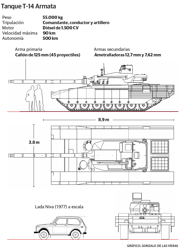 Las flotas de blindados rusos han demostrado su máxima vulnerabilidad ante los misiles antitanques como el Javelin norteamericano. Ucrania, por ejemplo, alardea de haber destruido más de 2.000 tanques enemigos desde el inicio de la invasión. Entre ellos, algunos de los más avanzados del arsenal ruso como el T 90. Si el T14 Armata se muestra tan vulnerable como el resto de carros del Ejército de Putin, el golpe a la imagen de la industria armamentística rusa sería letal.