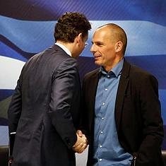 Varoufakis (d.), el viernes con Dijsselbloem.