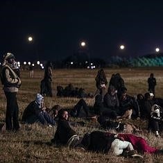 Inmigrantes esperan a subirse a un tren para cruzar el Canal.