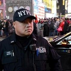 Un policía hace guardia en Times Square.