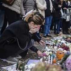 Varias personas colocan flores y velas en memoria de las víctinas de París.