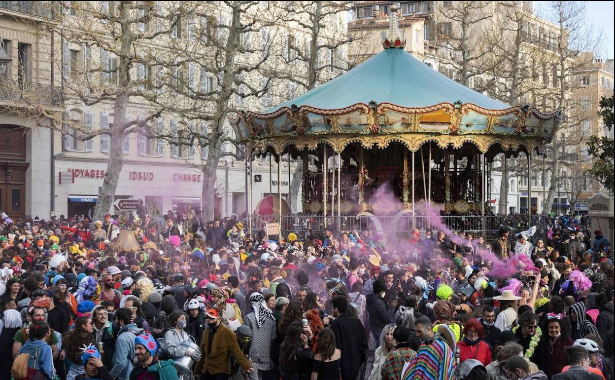 La convocatoria se había publicado en internet y las redes sociales. No era ningún secreto. «El Carnaval ha llegado», proclama la web Marseille Infos Autonomes, anunciando la hora y lugar del evento. En 2020, la fiesta fue cancelada por la epidemia, pero el domingo miles de jóvenes disfrazados, la mayoría de ellos sin mascarilla, desfilaron, bailaron y se divirtieron por las calles del centro de Marsella sin respetar las normas vigentes para frenar los contagios.