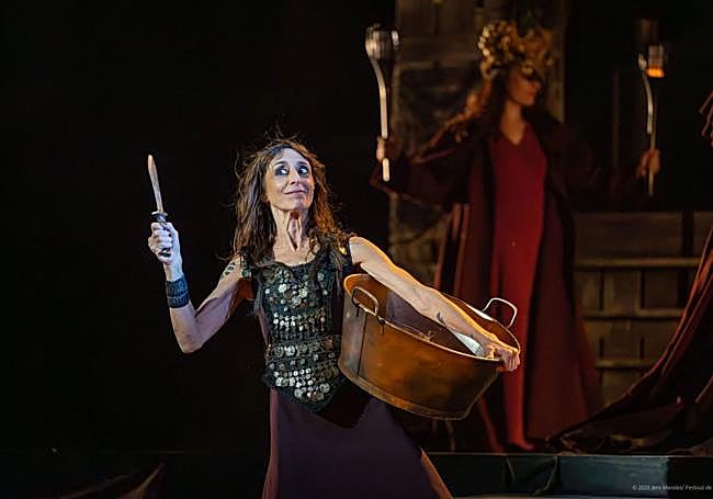A su lado, Carmen Mayordomo, convincente para ser piadosa cuando tocaba, vengativa en otros momentos. Un papel con diferentes registros que la actriz, que ya coincidió con Moirón en su 'Tito Andrónico' hace seis años, lo desarrolla de forma sobresaliente. Una auténtica demostración de sapiencia teatral.