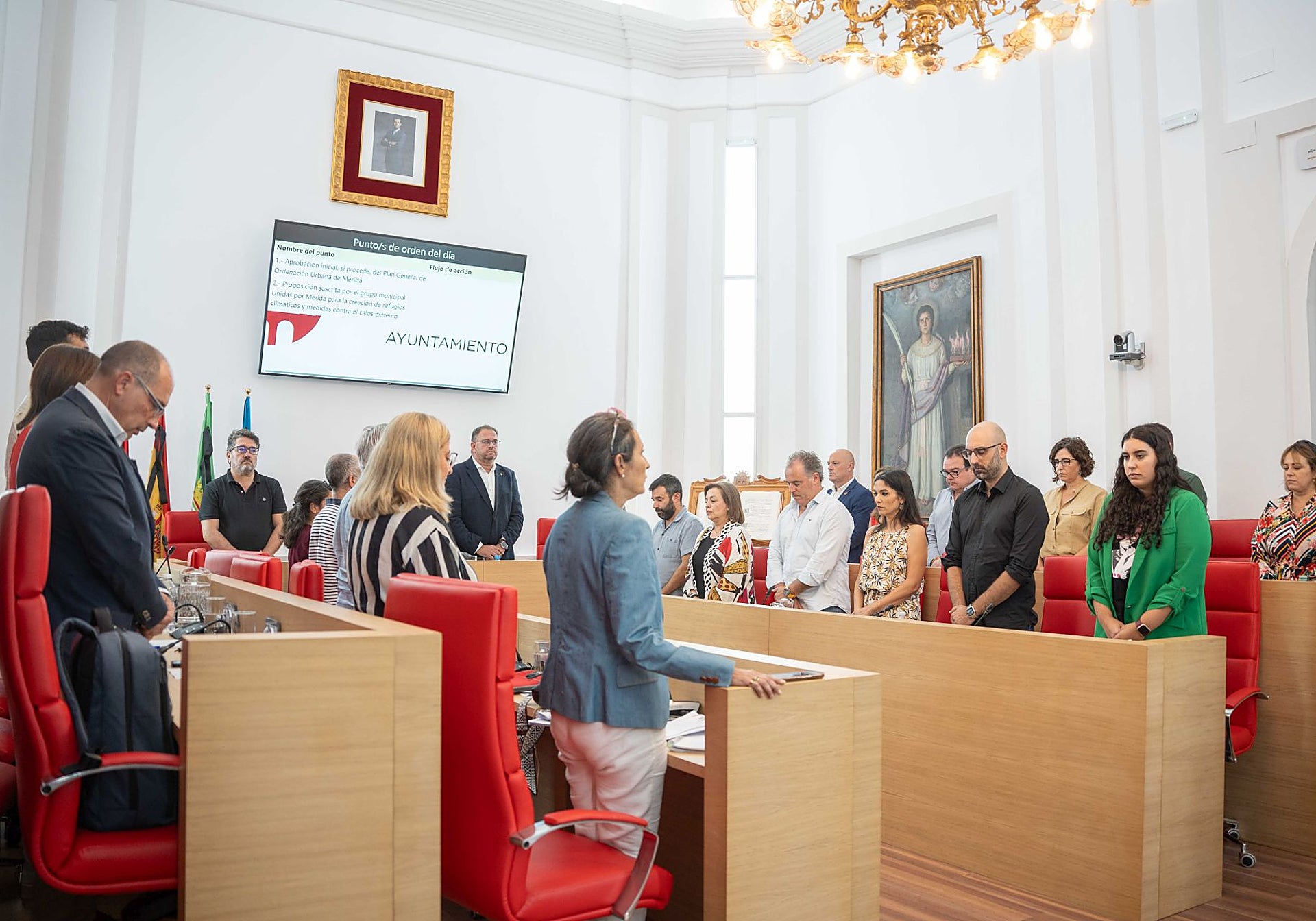 El Pleno ha comenzado con un minuto de silencio por la muerte del expresidente Guillermo Fernández Vara y con las cuatro banderas situadas en el salón de plenos con crespones negros.