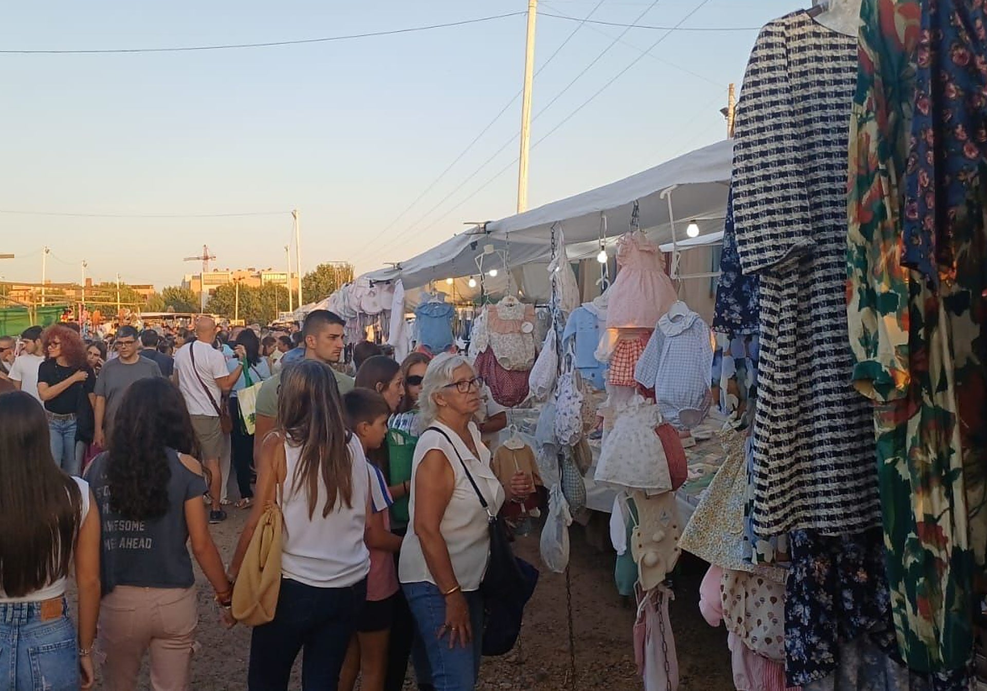Los vendedores se situaron en una sola línea y abundaron los de ropa y calzado. Apenas había de la fruta «porque se trata de un producto perecedero y muchos de los que vienen habían tenido mercadillo por la mañana y lo tenían hoy», aclara el presidente de Acaex, quien subraya la excelente respuesta del público. No solo fueron a mirar sino también a comprar.