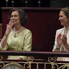 La Reina Sofía, junto a su hija Elena en el acto de proclamación.