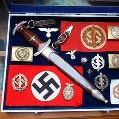 Las armas e insignias de un piloto de la Luftwaffe, la temible fuerza aérea del ejército de Adolf Hitler. También las de un soldado falangista de la Guerra Civil o las de varios miembros de las Hitlerjugend (Juventudes Hitlerianas), las SA (los 'camisas pardas' de la Alemania nazi) o la División Azul. Además numerosas cruces de hierro y multitud de condecoraciones plagadas de esvásticas, yugos y flechas. Son parte de la extensa colección de artículos militares, todos relacionados con el falangismo y el III Reich de la que presume en las redes sociales Agustín Pérez, número 11 de la candidatura de Ciudadanos (Cs) al Ayuntamiento de Gijón.