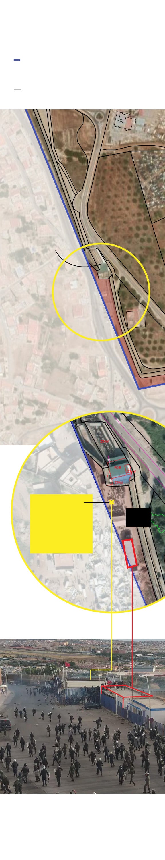 Precisamente, esa anchura máxima de la parcela de territorio español se registra en la explanada de entrada al Barrio Chino, donde de acuerdo con los mapas del IGN habría una distancia cercana a esos 25 metros desde la frontera real española -la que fijan el Catastro y el Instituto Geográfico- y el doble vallado posterior. Siempre según los mapas y certificados de ambos organismos oficiales, incluso la totalidad de las instalaciones fronterizas del Barrio Chino, en cuyos techos se produjeron también caídas y avalanchas, están igualmente en territorio español. Exactamente esas edificaciones se ubican en la parcela 122 del polígono 3 de número catastral 56101A00300122, de 946 metros cuadrados, y que contiene un «edificio singular», las propias instalaciones fronterizas.