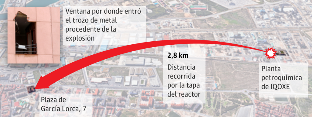 A veces la realidad supera la más increíble de las ficciones. Y eso ocurrió el martes a última hora de la tarde en el barrio de Torreforta, en Tarragona. Allí impactó, tras recorrer por el aire tres kilómetros en línea recta, la tapa del reactor que explotó en la petroquímica de la firma Iqoxe. La fatalidad hizo que ese «misil incandescente», como lo definieron los testigos, acabara matando a un vecino en su propia casa. Sergio Millán, de 59 años, fue la primera víctima identificada del accidente de la planta de La Canonja. El cuerpo del segundo fallecido, el jefe de turno de la petroquímica, fue recuperado, totalmente calcinado, ayer entre los escombros de la planta. Un tercer trabajador, que estaba en estado crítico, falleció la tarde de ayer en el hospital Vall d'Hebron, donde todavía hay dos operarios ingresados.