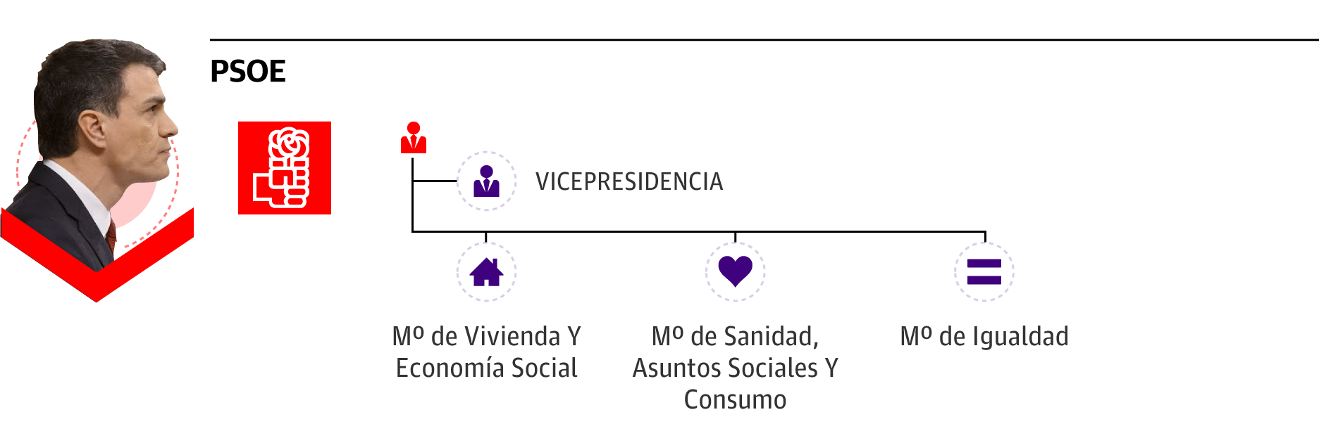 Según se supo ayer por la noche, a partir de un documento divulgado desde las filas socialistas, la petición inicial de Podemos era una vicepresidencia, y cinco ministerios, tres de ellos de nueva creación. En ese momento, Podemos buscaba una representación social, vinculada a sus líneas programáticas, y con anclajes en alguno de sus mensajes fuerza como la lucha contra el fraude fiscal.