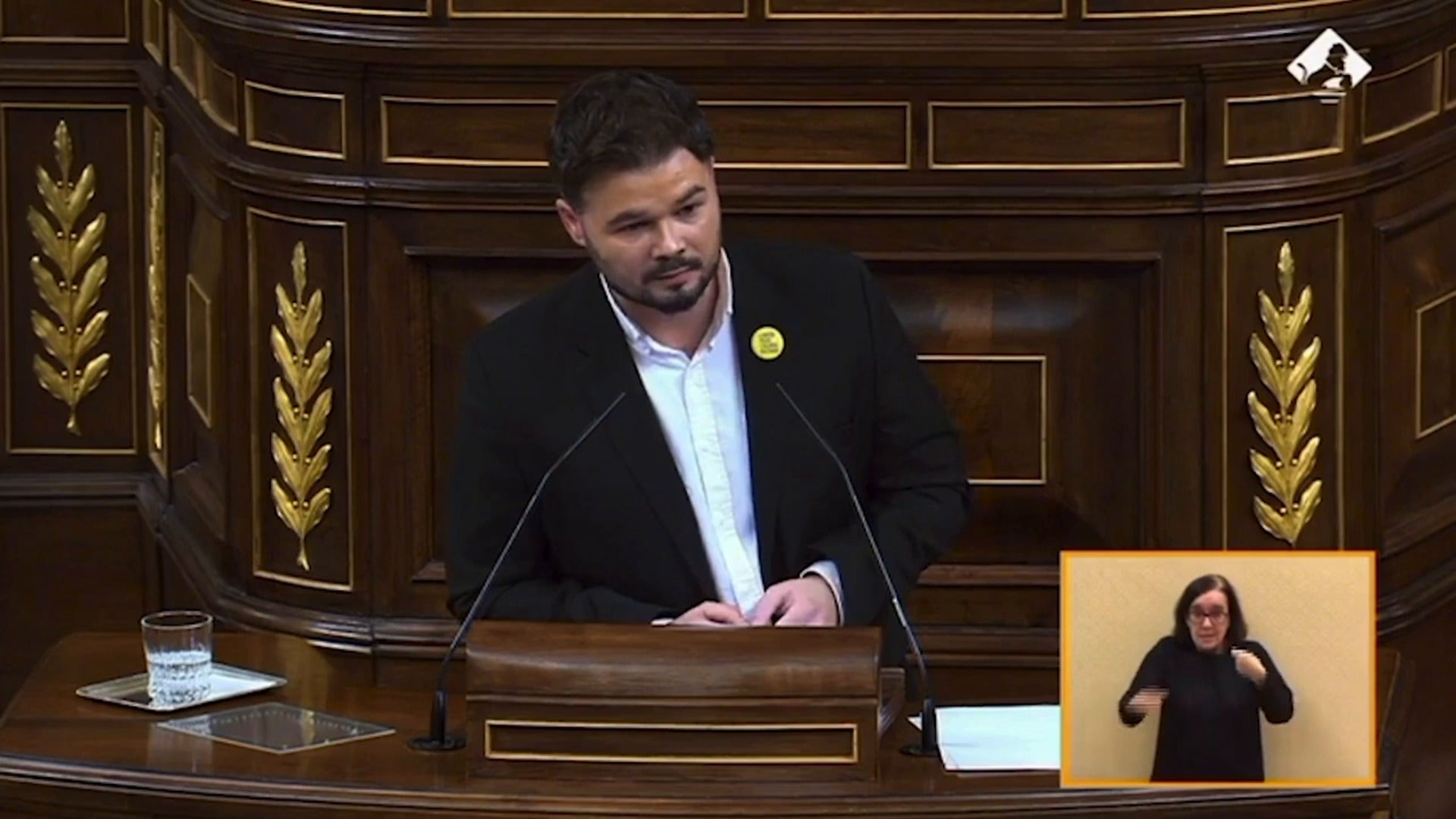 Gabriel Rufián y Pedro Sánchez se enfrentan en el pleno de investidura