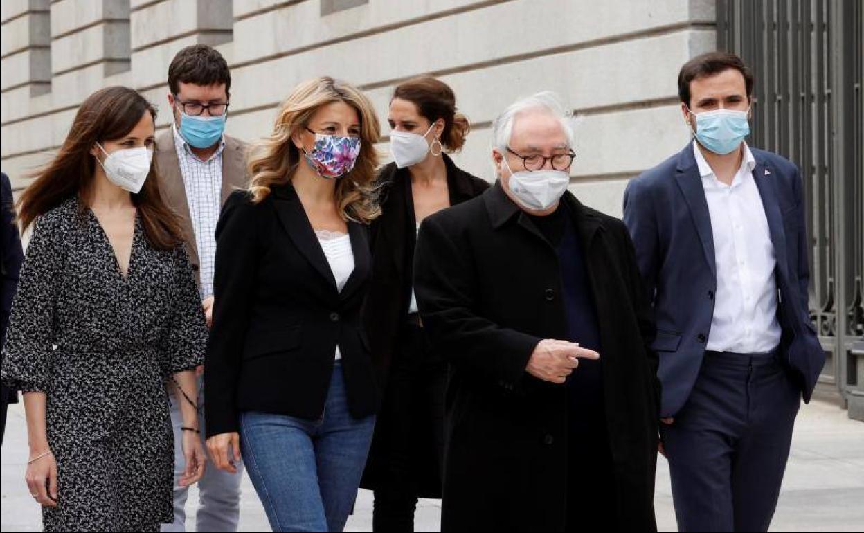 La vicepresidenta Tercera, Yolanda Díaz, llenó este jueves el vacío de poder que existía en la coalición de Unidas Podemos (espacio en el que conviven Podemos, Izquierda Unida, Galicia En Común y En Comú Podem) desde el adiós de Pablo Iglesias el pasado 4 de mayo, tras las elecciones madrileñas. Su toma del mando se escenificó en un acto celebrado en el Congreso en el que, arropada por los otros cuatro ministros de la formación morada (Irene Montero, Ione Belarra, Alberto Garzón y ManuelCastells) y sus secretarios de Estado, reunió a los 35 diputados del grupo parlamentario para fijar un nuevo rumbo. «Tenemos que redoblar todas nuestras energías porque vamos a por todas y vamos a seguir haciendo historia, que no es fácil», afirmó durante una arenga de casi una hora en la que también animó a los parlamentarios a «no tener miedo porque Iglesias nos acompañará durante todo el camino».