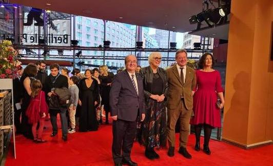 Las actrices Patricia López Arnaiz, Itziar Lazkano, Ane Gabarain y Sofia Otero, junto a la directora Estibaliz Urresola esta tarde en la Berlinale. Efe